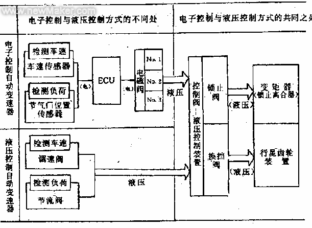 图3-3 电子控制自动变速器与液控液动自动变速器的比