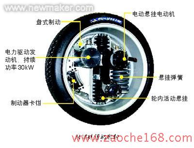 □ 车轮中有电力驱动发动机,30kW恒功率,能持续20s的60kW功率,重量为5kg;