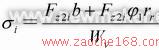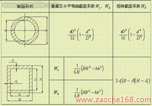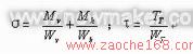 1)牵引力或制动力最大时,桥壳钢板弹簧座处危险断面的弯曲应力σ和扭转切应力τ分别为: