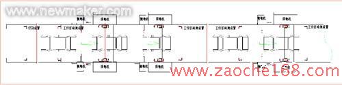 □ 面漆线:准备室(安装车型与颜色输入装置)→手工喷涂区→自动喷涂杯站→自动喷涂枪站→手工喷涂区→自动喷涂杯站→手工喷涂区。