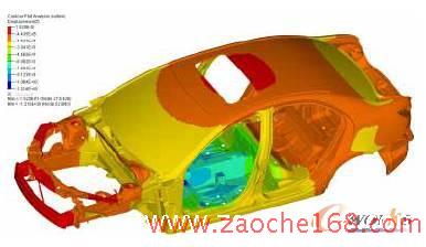 图13 弯曲工况下白车身Z向位移分布图(工况二)