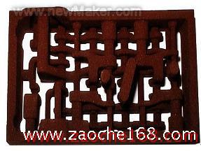 图3是激光烧结成型的一个复杂砂型。成型用的树脂砂与通常使用的热固化树脂砂极为相似,只不过对砂的粒径分布和形态,树脂成分及表面处理等方面有更严格的指标。成型时的层厚一般为0.2mm,精度可控制在±0.25mm以内。由于激光扫描的速度很快,树脂在成型时不能达到完全固化。成型后将未烧结的浮砂清除后,砂型一般要放到加热箱中进行二次固化。经二次固化后的砂型可达到与射芯机制得的砂型相同的性能。由于发动机的部件大多采用砂型铸造,因此快速砂型铸造已成为发动机样机试制的最常用和最有效的方法。