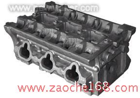 相对于汽车进气管,发动机的缸体和缸盖结构更为复杂,但是快速成型的最大优点就是与复杂程度无关,越复杂的零件越适合快速成型制作。由于缸体、缸盖的内部结构复杂且壁厚相对较厚,制作这些零件的最佳方法是快速砂型铸造。图6和图7是用快速砂型铸造获得的一组缸体和缸盖的铝铸件。此类零件的制作周期平均约2-3周。由于铸造工艺与最终生产工艺极其相近,零件的尺寸精度和机械性能与最终产品零件具有很强的可比性。因此,快速砂型铸造的缸体缸盖可直接用于发动机的各种评价试验,如对气道进行流动分析,对水道进行冷却性能测试。
