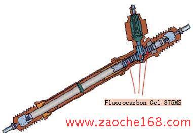 同时,Fluorocarbon Gel 875MS能够使得弹簧轭插入时允许较大的公差,这种高粘稠度的油脂会将较松动的物件粘住,所以两边的磨擦面之间实际上是给润滑油隔开而没有接触在一起,也就是两个接触面彼此在润滑油内移动。因此,不但消除了弹簧轭和齿条之间的噪声,同时也可以免去昂贵的复合塑料材料插入件。