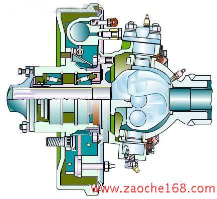 差速器用以连接左右半轴,可使两侧车轮以不同角速度旋转同时传递扭矩。保证车轮的正常滚动。有的多桥驱动的汽车,在分动器内或在贯通式传动的轴间也装有差速器,称为桥间差速器。其作用是在汽车转弯或在不平坦的路面上行驶时,使前后驱动车轮之间产生差速作用。