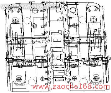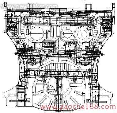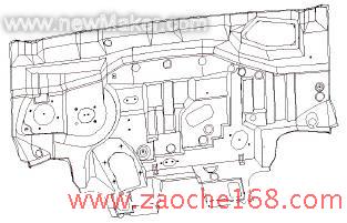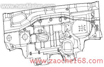 为提高整车结构上的碰撞安全性,我们根据《CMVDR 294 关于正面碰撞乘员保护的设计规则》中要求,必须对驾驶员前部的车身结构作加强,目前多采用具有独立前机舱结构。在前部多采用大型的前端横梁和前大灯支架来提高碰撞安全性。前减支座分别焊装在侧立板与通风罩外板上,通过提高悬架与支撑部位的刚性来提高操纵稳定性和降低噪省。并在前机舱上多处涂敷一层阻尼减振吸音材料,以吸收发动机产生的一部分噪声,同时增强隔板隔热效果。在下隔板部分,采用下隔板与消音板焊接结构,必要时可在下隔板总 成中加有复合隔音材料——消音垫,充分满足隔音、隔热要求。
