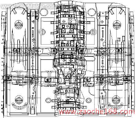 前机舱的结构设计,充分考虑了将正碰时产生的冲击能力迅速吸收,采用合理的吸能结构,如采用高强度钢板和不等厚钢板。前机舱一般由前纵梁总成、前横梁、墙板总成、侧支承总成、下隔板总成等钣金件焊接组成。前横梁的主要功用是水箱、散热器的支承,前纵梁的主要功用是发动机等的支承,墙板及侧支承 总成的主要功用是前减震器的支承,下隔板是离合器总成、制动总成、空调系统、仪表板系统的支承。