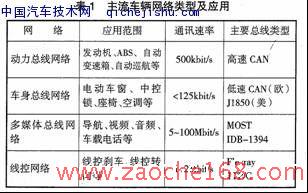 考虑到数据传输速率、协议机制、可靠性、容错性和成本的要求,车内网络的类型依赖于它们的应用领域,不同网络类型的介绍和应用见表1。