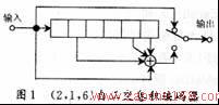卷积码通常记作(n0,k0,m),其编码效率为k0/n0,m称为约束长度。(n0,k0,m)卷积码可用k0个输入、n0个输出、输入存储为m的线性有限状态移位寄存器及模2加法计数器电路来实现,卷积码的编码方法有3种运算方式:离散卷积法;生成矩阵法;多项式乘积法。此外,卷积码的编码过程还可以用状态图、码树图和网格图来描述。本文设计的编码器考虑到硬件电路的实现,选择了多项式乘积法。本系统所选卷积编码器如图1所示,该卷积编码器为(2,1,6)自正交卷积编码器。