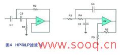 正如图3所示,会采用一个高通滤波器来抑制能够引致下一个增益级饱和的直流器件。这个高通滤波器的截止频率为0.5Hz。该滤波器采用二阶Sallen Key型的 Butterworth 拓扑技术来实现。至于第二级是一个低通滤波器,其拥有100Hz的截止频率和100的增益,并且同样以Sallen Key 拓扑来实现。诸Sallen Key 类的模拟滤波器是围绕着有电阻器和电容器的运算放大器而建立。当中没有采用电感器是因为它体积过大、笨重和不够完美。