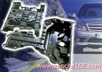 图4 第一款用于轿车的热塑性塑料油盘模块是底盘/金属件奖的优胜者。该模块将压铸铝上盖与多功能玻纤增强 Zytel 尼龙66下部外壳整合到了一起