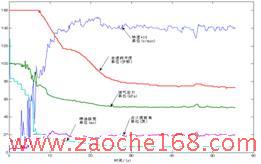 整车主要标定发动机非稳态工作点,也就是过渡工况,主要包括发动机起动工况、加速工况、减速工况、断油工况等。使整车试验污染物排放数据的优化、瞬态燃油消耗的优化。同时要进行“三高”标定、EOBD故障诊断标定等。下图7是发动机冷起动工况各个参数变化曲线图;图8是欧Ⅲ城市和城郊道路循环工况。表1是整车转鼓排放数据对比。