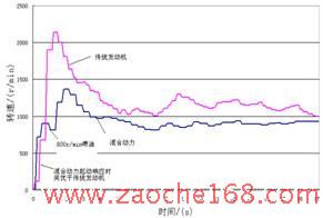 电机先将发动机拖转到喷油转速,然后进入扭矩助力模式,扭矩根据发动机水温进行脉谱查找,当转速高于喷油转速+400r/min时,电机卸载,混合动力起动过程成功。下图10是传统发动机与混合动力起动转速对比图。根据下图可以看出,混合动力的起动的优点是:起动时间短,转速响应快,转速没有高的超调,转速过渡平滑,起动性能良好。