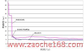 混合动力没有传统发动机起动工况过浓喷油现象,而是电机直接将传统发动机拖转到怠速工况进行喷油、点火。因此混合气体偏稀,有利于起动工况排放的降低。同时可以节省起动燃油,提高燃油的经济性。下图11是传统发动机与混合动力起动喷油量对比图。