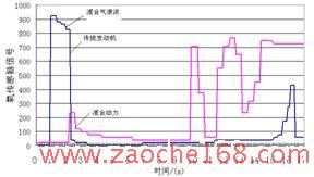 起动、暖机、怠速工况的过渡直接关系到发动机的排放,在传统的发动机标定过程中,最大的难点是起动工况的排放问题,原因是起动过程中,由于氧传感器本身需要加热时间、三元催化转换器需要起燃温度,因此导致起动的几十秒内发动机处于开环控制,而起动工况混合气要求很浓,从而导致HC、NOx、CO排放值特别高,而一旦进入氧闭环、三元催化起作用下,排放完全由闭环优化标定解决。而对于混合动力系统,能够实现在电机拖动下过渡到发动机怠速工况,提高发动机起始喷油转速,减小或者避免传统发动机起动过浓喷油以及怠速油量,提高电机在发动机起动工况的助力效果。