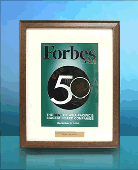 “亚洲顶尖50强”是福布斯杂志从全球500个大企业中,挑选在亚洲地区上市的企业,其营收或市值超过50亿美金,评鉴企业的长期活力能力、营收、成长性、股价等多项指标后所得的结果。