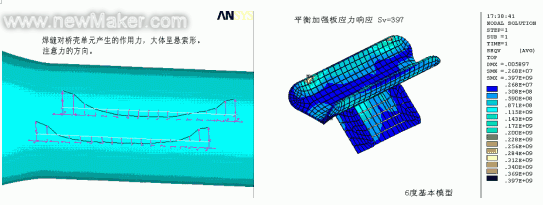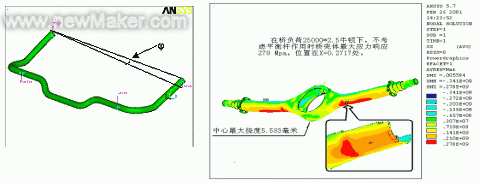 通过对车后桥壳的改进,可以达到不增加桥壳应力响应的条件下,有效的压低焊缝应力响应,如前期实验的疲劳源的确发生在焊缝上,属于平衡杆支架焊接方面的问题,改进方向是尽可能弱化平衡杆支座刚度,降低对桥壳的附加约束并减小焊缝应力响应。