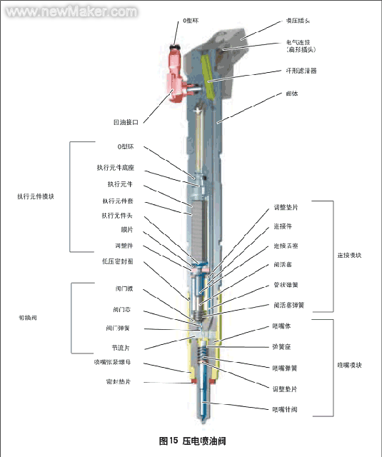 采用压电喷油阀的好处在于:每个工作行程可产生多个触发周期;大大缩短多个喷油阀之间的切换时间;可以产生很大的力以对抗共轨压力;燃油卸压时可精确地控制行程;触发电压为110~148V,这取决于轨道的压力。