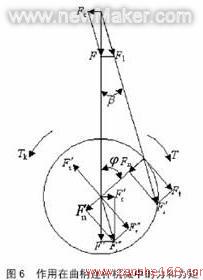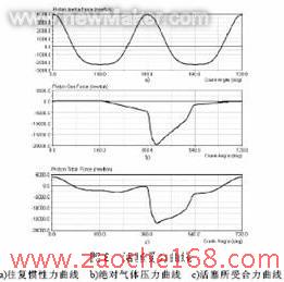 当不考虑与气缸壁的摩擦力时,活塞所受合力为作用于活塞上的气体压力和惯性力,由于作用方向都是沿气缸中心线,故作用于活塞上的合力是气体压力与往复惯性力的代数和,所以合力的参数表达式为:_gas_force+_inertia_force合力将在曲柄连杆机构中产生一系列的力和力矩。如图6所示,可以将合力F进行分解以分析力的传递效果。发动机指示转矩(indicate_torque)的参数表达式为:ABS(_total_force30(sin((_angle+_angle)PI/180)/(cos(_anglePI/180))))。