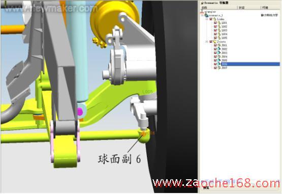 根据转向分析的特点,这里创建了7个运动副。如图所示:
