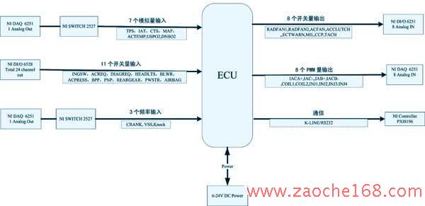 为了模拟发动机特定的实际工作状况,需要在同一系统实现多输入输出信号的集成控制和采集。发动机管理模块作为汽车传动力控制的核心部件,其生产质量检测是保证整个产品生产过程完整的重要步骤。由于输入输出信号繁多,使用传统的仪器很难实现很好的系统集成和通信。随着测试过程的日趋复杂化和生产过程越来越高的自动化要求,设计开发一个界面友好简单、性能稳定、高度集成化和自动化的测试系统的需求也日渐迫切。