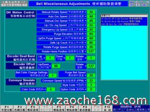 能够监控目前9个高速旋杯的所有参数设置以及现场实际参数(如转速、流量、成形空气、高压值、位置等),如图4。