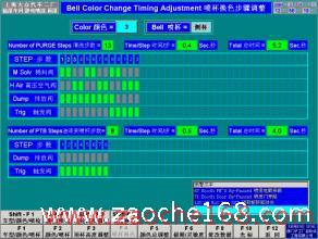 各种生产及设备信息的定义与设置,如车型定义、颜色定义、过电流上限、运动控制参数、手动速度等进行预先定义或设置。如图5。能够任意的进行每个节拍后的ESTA换色程序及步骤编程。如图5。