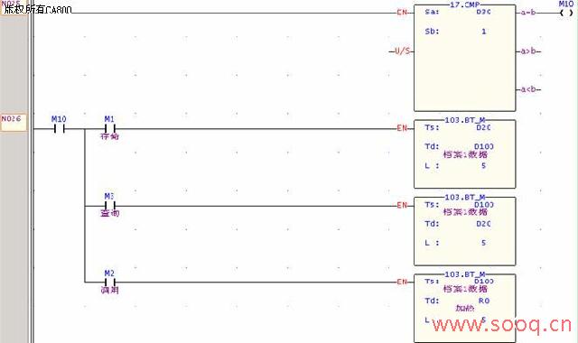 程序部分可以放于子程序区,参数需要修改时才调用该部分的程序,可以节省PLC的扫描周期时间。档案1号的程序存储、查询、调用程序如下,其它档案的程序部分依次类推。永宏PLC具有将近7000多个普通的R寄存器、4000多个普通D寄存器,另外还有8192个档案缓存器可供使用,所以对于数据的存储绰绰有余。