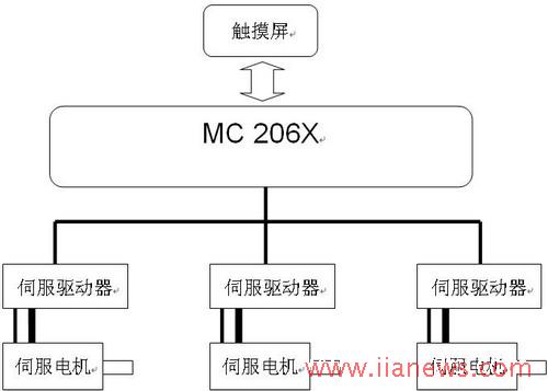 触摸屏通过MODBUS总线和MC206通讯,Trio MC206x 运动控制器内置实时多任务嵌入式操作系统,使206可以同时运行多个程序,等级高的程序优先执行。MC206x用一个进程做键盘响应和参数修改,这样触摸屏就可以控制MC206x了。
