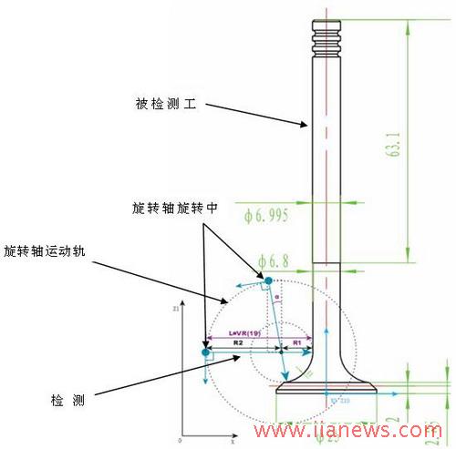 2)系统可控制两个直线轴(X Z1)和一个回转轴(B),其中两个直线轴(X Z1)和回转轴(B)可以联动,回转轴(B)的方向保持与X Z1运行轨迹的法线保持一致。为了增加检测速度,再增加一Z2轴检测工件的直线部分。