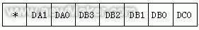 第三字节:第三字节输出最近障碍物的距离值,数据格式如图5所示,DA1DA0表示最近障碍物距离的第一位数据,按BCD编码,最大值为3;DB0~DB3表示最近障碍物距离的第二位数据,按BCD编码,最大值为9;DC0表示第三位数据,0表示0,1表示5。