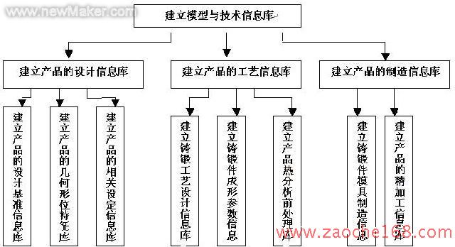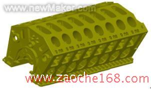 根据模型的特征信息生产出铸造用的模具或砂芯,也可以利用激光快速成形技术得到铸件产品本身[3],例如某柴油机缸头的激光快速成形;在产品精加工过程中,可根据这些工程数据信息快速生成NC加工程序,完成产品的最终加工;最后,可以根据以上这些工程技术信息进行产品的数据管理(PDM),进行在线检测、质量评估及装配调试等生产活动一体化管理。