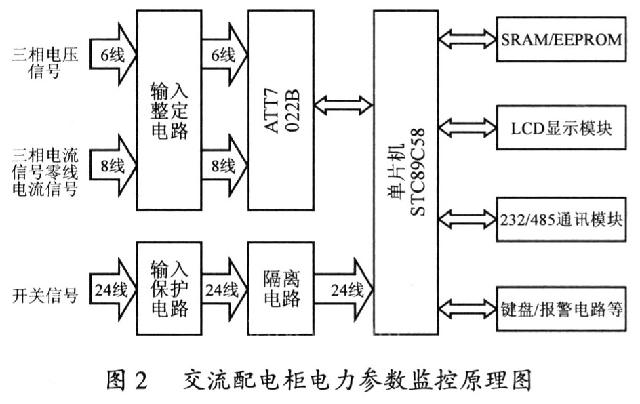 交流配电柜主要检测的电力参数有三相电压、电流有效值,各相或合相的有功功率、无功功率、视在功率、功率因数、频率、相位等,同时对开关状态、熔丝通断等开关量进行检测。在传统的设计中经常使用集成运算放大器等分立电子器件实现上述功能,这样的电路一般是一套非常复杂、庞大的电路,不但成本很高,而且设计、调试都可能遇到很大困难,甚至有的功能很难实现。