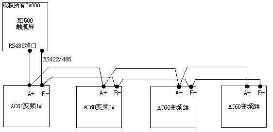 三、AC60变频器与人机之间的地址关系 在触摸屏中只支持Bit和Word地址类型,不支持字节、双字(D)地址类型。变频器所有字和位状态均用16进制“H”表示,如触摸屏读取数据为10进制则需要将变频器地址位转换为10进制后输入。当读或写位地址时,在触摸屏读取地址用“3X”,如读3002H(变频器状态)位地址。当读或写字地址时,触摸屏读取地址用“6X”,如读3001H(运转命令)这个字地址。 另外还要确定变频器与人机之间地址是否存在一个偏移量。如有则在读取字或位地址时要加上偏移量才是要读的正确地址。 四、AC60变频器与触摸屏连接时注意事项 1、于两者之间采用的是“串行通信”,RS485端口连接必需用屏蔽双绞线。 A、B不能接反。 五、AC60变频器与触摸屏参数设置。