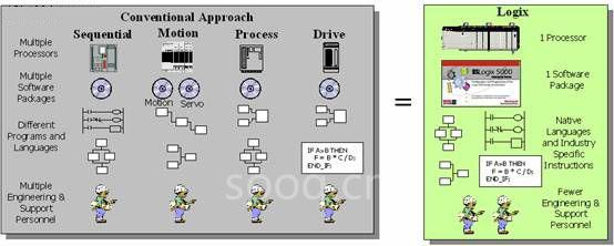 对控制系统平台的挑战是整个工厂级的多种控制功能的集成,以及控制平台上如何集成信息系统的应用和通讯。强大的柔性扩展能力和系统可重用性体现也是PAC的重要特性。具有革命性的罗克韦尔自动化PAC控制平台完美诠释了当今全方位的自动化生产。(如图
