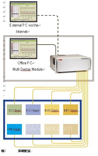 WPA分析仪将FTIR光谱仪与特氟龙ClippIR+相结合可实现非介入式的监测功能。光谱仪包括一个多探头模块,该模块可产生光波,足以同时照亮八路不同的监测点。通过光缆,每个监测点皆可在百米之外与分析仪相连。与机械多路切换仪器相比,该设计具有极高的重复性优点。图2说明了一种系统配置,包括有五个探头和三个预留空位。