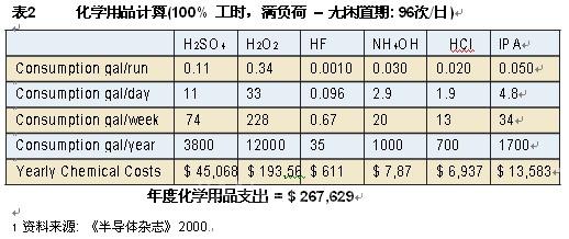 化学用品及年度总成本见表2(以100%满负荷计)。