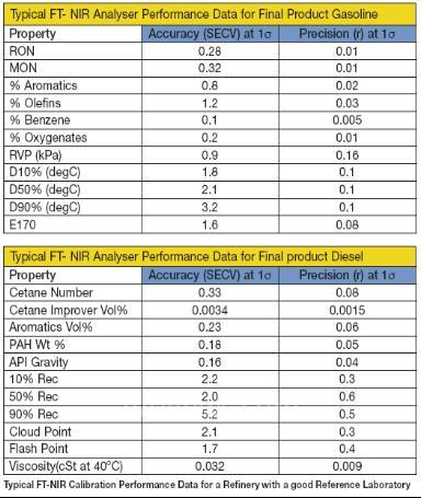 由于使用了关联技术,并运用优良的统计方法,在线FT-NIR分析仪提供的分析精确性可同ASTM实验室用来建立校正模型的参考数据相媲美。但是,同传统的使用多个分析仪调合优化方案相比,使用ABB的在线FT-NIR分析仪能够在多大程度上提高分析的可重复性及分析仪的可用性。由于轻质烃类组份油易于进行取样检测,对其进行分析简单易行。以轻质烃组份油为例,同传统的常规物理分析仪相比,FT-NIR分析仪使用的超低噪声光学技术能够提供令人不可思议的分析可重复性。