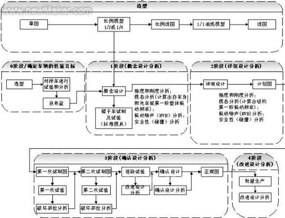 在汽车产品研发流程中,一般有如下5个同步的有限元分析阶段: