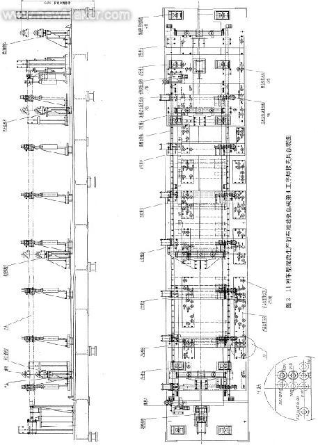 我们本着柔性化的设计原则,采用模块化的设计方法,对车厢产品功能和焊夹结构进行分析,将经常的、重复使用的、具有共性的零部件进行简化和系列化,经过优化设计后成为具有独立功能的通用件,如:上面介绍的双导柱举升机构、侧滚轮导向机构、定位夹紧机构、退料机构、限位锁紧机构等。利用计算机辅助设计和数据库管理技术,将其结构实形完整绘制后作成图块,形成一个专用于焊装生产线的标准数据库,同时建立通用件、外购件等多个参数库,在设计时直接以模块方式调用插入到设计图纸中。使设计在一个较高的起点上进行,提高设计效率75%。同时大量的通用件降低了制造成本,促进了制造效率的提高,为解决日益缩短的工期给设计造成的压力,找出一条科学的设计方法。