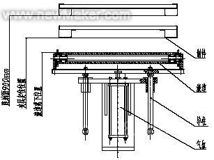 举升机构是该夹具中接料和运送工件的重要功能部件。接料和运输时该机构升起,焊接时该机构落下。我们采用气动双导柱机构(见图4)。由气缸举升,双导柱导向,使滚道升起运行平稳,到位准确,结构简单可靠。