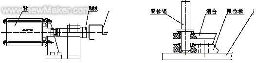 为准确控制滑台的移动行程 ,我们设计了定位销进行限位(见图8)。滑台到位后,安装在滑台上的定位销插入到固定台上的限位孔里,保证定位准确,使用方便,完全满足产品设计精度和工艺要求,保证整车质量。