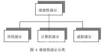 在目前发展水平上,维修性演示可分为三种:传统的维修性演示、计算机演示和虚拟演示(如图 4所示),后面分别简称传统演示、计算机演示和虚拟演示。
