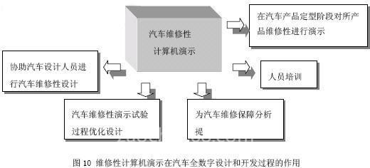 维修性计算机演示在汽车全数字设计和开发过程的作用如图10所示。