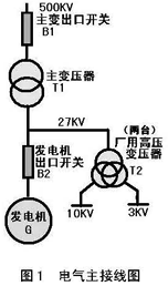 为提高机组运行的灵活性,与二期无GCB不同,三期的两台发电机均配置了GCB,但不设高压备用变压器。在发电机未投入时(GCB断开), 10KV/3KV厂用电可直接通过主变/厂高变取自 500KV电网,见图1。因此,三期的运行和连锁方式与二期有所不同。当机组运行中断开Bl时,发电机通过T2带厂用电运行,即 FCB 。而当断开B2时,则由500KV线路侧通过Bl, T1向 T2供厂用电,因此,主变压器出口开关B1不参与机、电、炉连锁跳闸。总的机、电、炉连锁原则如下: