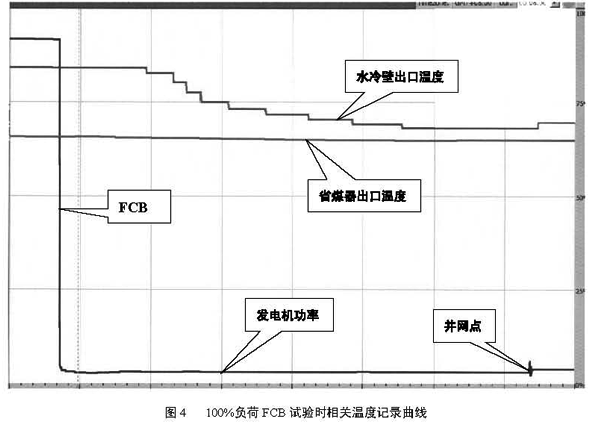 按三期的设计,在汽轮发电机甩负荷时,锅炉通过旁路系统维持运行。从热力系统角度,其工况的变化与FCB 时最为相似,甚至更极端。两者不同之处在于厂用电的供电方式,在甩负荷时,厂用电由电网倒送,相对较为安全。因此在进行FCB 试验前,应先完成全真运行工况的甩负荷试验,在按常规测取汽轮发电机转子飞升转速的同时,考核整个热力系统及相关控制系统在此工况下的应变能力。