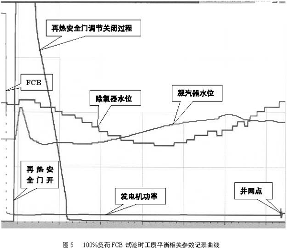 尤其是过渡过程中的工质平衡良好,完全没有了二期900MW 机组在 FCB后由干再热蒸汽从安全门大量排空导致除氧器和凝汽器水位大幅下降的紧张局面。见图 5 :