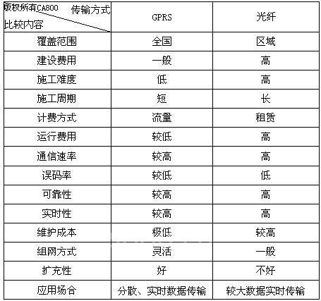 GPRS与光纤通讯方式的比较详见下表