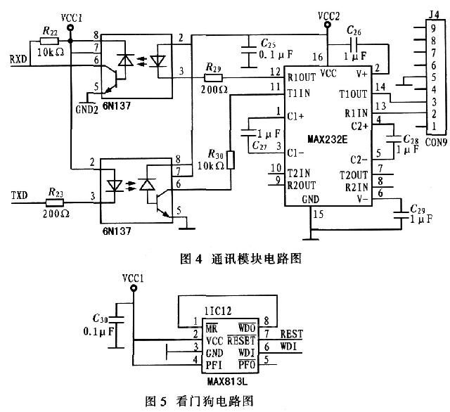 通讯模块采用MAX232,并采取光隔离设计,以提高仪表的抗干扰能力,如图4所示。