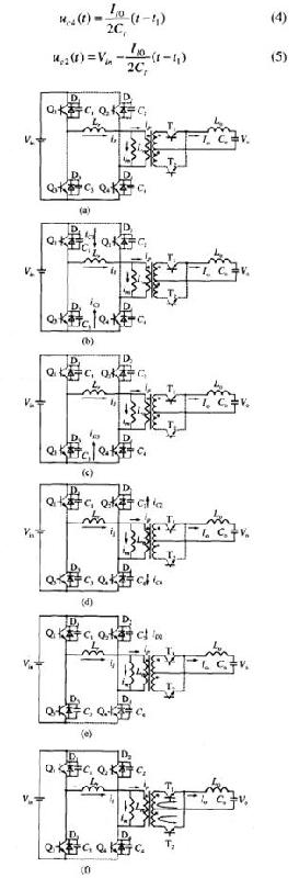 分析前作如下假设:①所有开关管,续流二极管,电感,电容均为理想器件;②变压器变比为K}漏感L;远小于输出滤波电感Lo;③开关管QWQ4并联电容均为Cr,开关管T}v T不并电容。